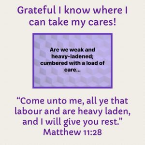 Are you weak? heavy-ladened? Burdened? I am grateful for burdens, yes!  Why?  I know that I can go to my Savior and He cares.