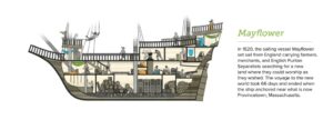 I remember visiting the Mayflower as a family when I was a teen.  The replica sitting in the harbor was beautiful but as we approached it, I could see just how small this ship was.  We were led down some stairs to the area where the passengers would have been living and it was VERY small with low ceilings.  I can’t imagine the courage it took to sail across the Atlantic in cold temperatures in such a small ship!