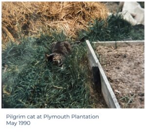 See, I grew up with an historian and every Thanksgiving my parents discussed and taught us all about the Pilgrims.  One of my favorite vacations of all time was when we traveled from Toronto, Canada to every New England State to learn our US history.  I was born in Michigan but my parents immigrated to Canada when I was 9.  Canada is my home.  The home I remember.  America is my land of birth.  The land that I love.  (Of course, as a 20 year old, the only clear picture I had from the Plantation is this cute cat.